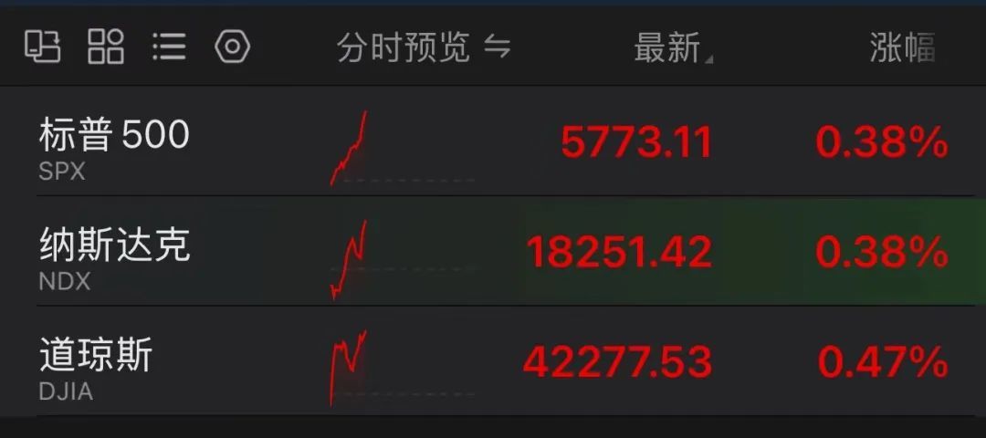 十月九日深夜,美股三大指数低开后转涨,截至发稿, 道路指数上涨0.47%。标普500指数创下市场最高纪录,最新涨幅为0.38%。