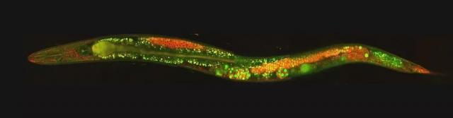 美丽的隐杆线虫被插入编码绿色荧光蛋白基因。 Dan Dickinson,Goldstein lab,UNC Chapel Hill