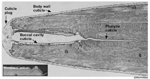 箭头是由线虫身体不同部位组合而成的“外骨骼”。 wormatlas.com