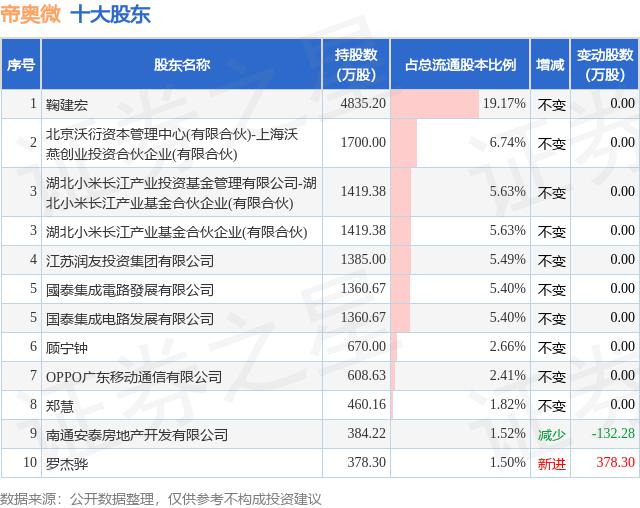 根据帝奥微 2024 年中报告公布的十大股东详细信息如下: