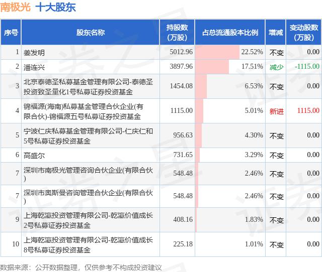 根据南极光 2024 年中报告公布的十大股东详细信息如下: