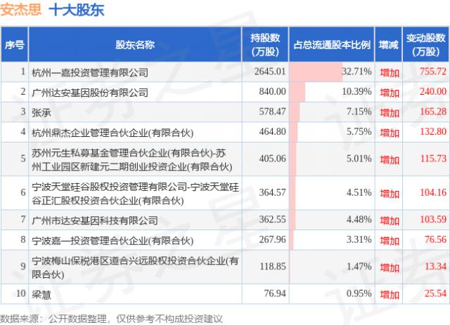 根据安杰思 2024 年中报告公布的十大股东详细信息如下: