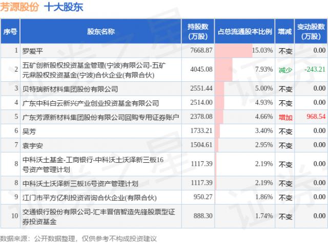 依据芳源股权 2024 年中报告公布的十大股东详细信息如下: