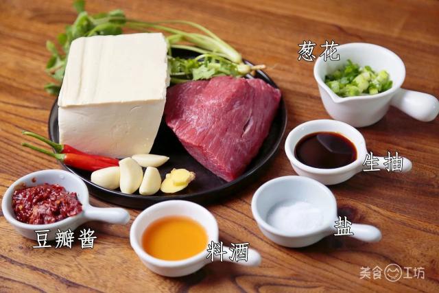 牛肉 200g/ 豆腐 1 块 / 豆瓣酱 / 葱蒜
