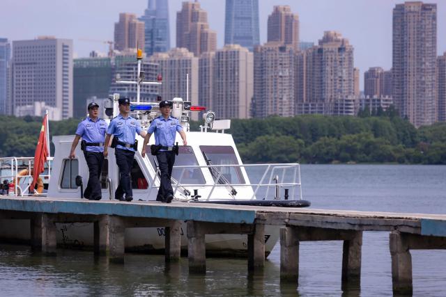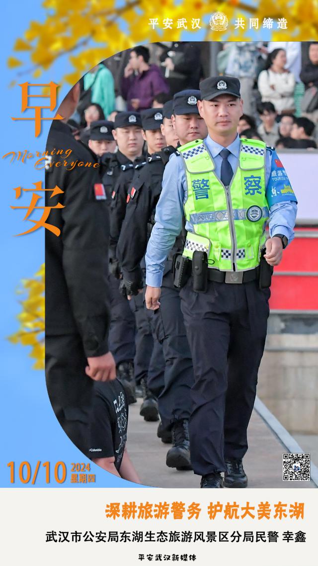 9 月 17 太阳,东湖畔,晨光恰到好处,微风习习。在熙熙攘攘的人群中,一群警容严明、装备齐全的警察和辅警排队巡逻,让游客充满安全感。