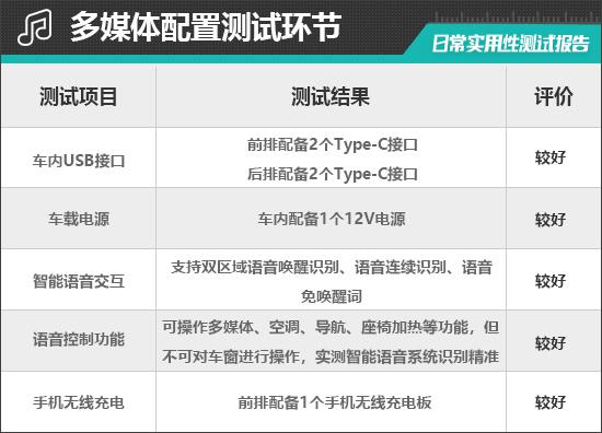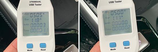 另外,我们还测试了充电插座的电压和电流,其中前排 Type-C 充电插座的电压分别是 5.05V 和 电流分别为5V 1.18A 和 1.11A;后排 Type-C 所有充电插座的电压都达到了 电流分别为5.14V。 1.23A 和 1.05A。