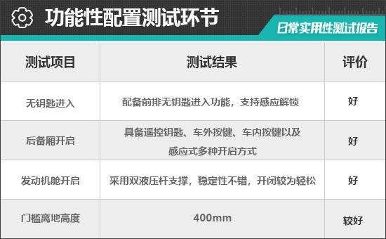 评估汽车后备箱后门支持遥控钥匙、车外按钮、车内按钮、足部感应等多种开启方式,日常便利性能良好。