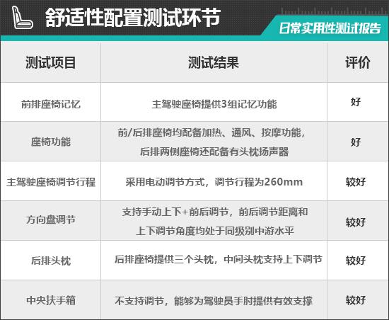 对主驾驶座进行检测时,对主驾驶座前端与末端之间的距离进行评估。 260mm,处于同级中游水平,可调范围较广。