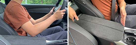 2025 上汽大众帕萨特 Pro 前中央扶手采用对开设计,包裹软质材料,手感好。扶手虽然不支持前后移动或角度调节,但在驾驶过程中可以为驾驶员的肘部提供有效的支撑,因为扶手面积大。