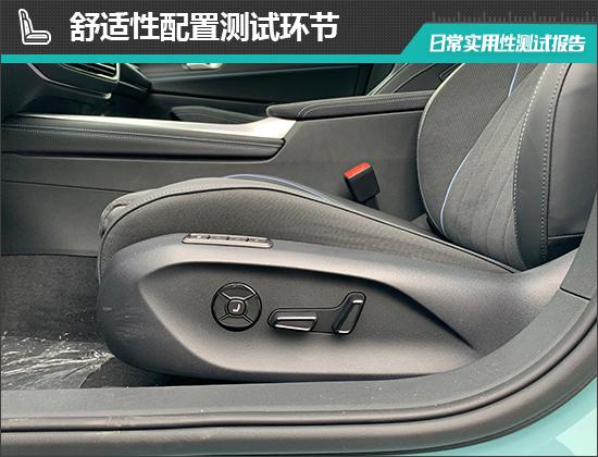 评测车子主 / 副驾驶座椅均支持电动调节,调节按钮设置在座垫侧面,位置设计合理,日常操作非常方便。另外,前面, / 后座配有加热、通风和按摩功能,后座两侧配有头枕扬声器,功能性能令人满意。此外,评估车主驾驶座还提供了 3 组内记忆功能,方便性好。