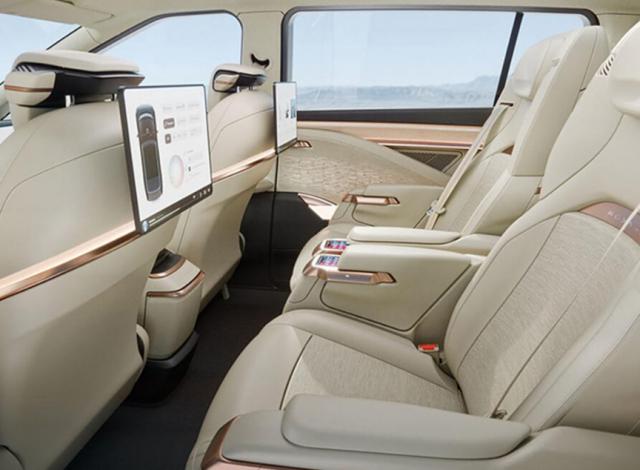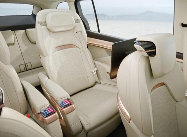 车内座椅采用 2 2 3 计划,二排提供大型娱乐屏幕,两个宽大的航空座椅之间没有预留出过道,进出第三排的便利性平淡无奇。