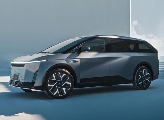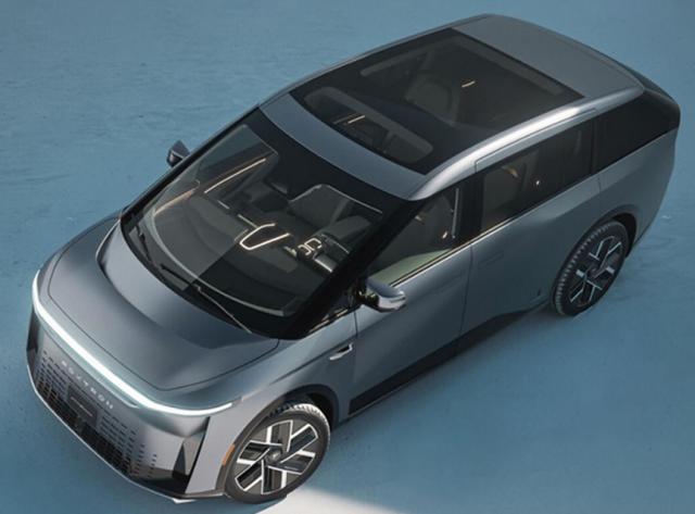 就外观设计而言,Model D 采用宾尼法利纳设计,新车造型和小鹏 X9 轮廓有些相似,选择分体式大灯,贯穿式大灯。 LED 日间行车灯是目前常用的设计。中网布置了密集的散热孔,两侧还提供了导风槽,有效提高了汽车的散热性能。