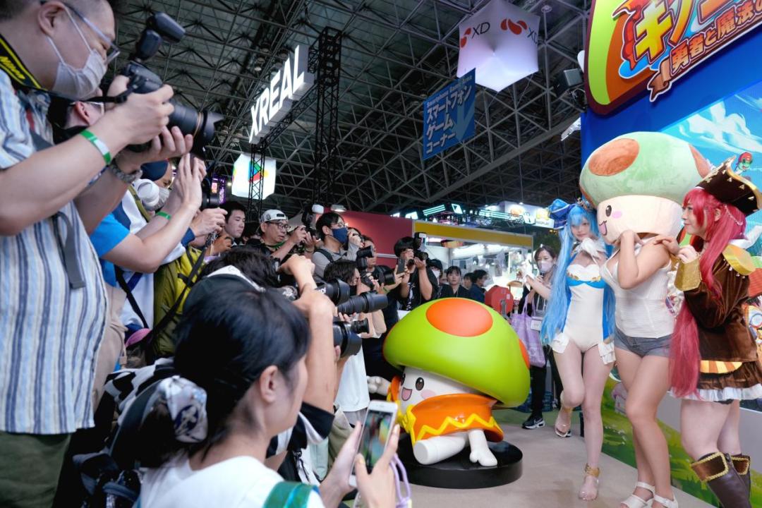 今年TGS的中国制造商也远远超过了去年。完美世界、叠纸等厂商在TGS期间将自己重点产品的游戏信息留给外界发布。除了展览之外,《蘑菇勇者传奇》、《肥鹅健身房》等休闲游戏更是日本玩家的吸金利器。
