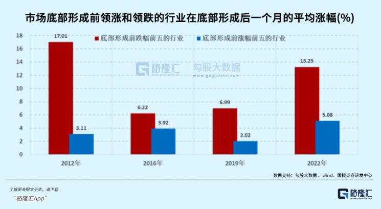 据机构统计,当出现两次底部反弹时,见底前跌幅较大的行业,在底部形成后涨幅较大,2012年、2016年、2019年和2022年也出现了类似的规律。