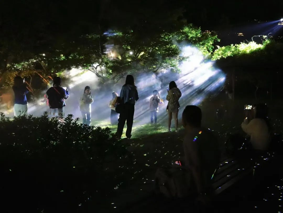 幻光森林,东湖绿地,弥漫着阵阵雾气,原本无形的光芒,在这里吸收了音乐的灵感,悄然变幻,宛如仙境。