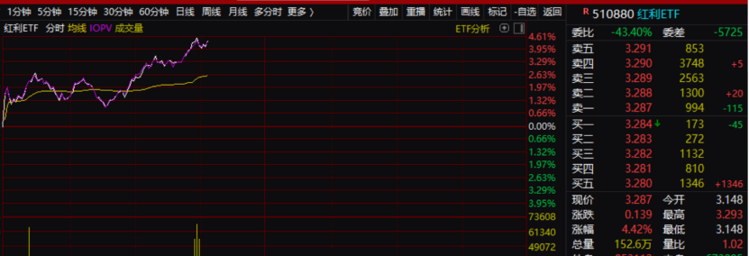 今天上午,a股市场发生了很大的变化,但经过一段时间的下跌,很快就被双头拉了上来。从盘面来看,以代码601开头的大盘股蓝筹股(也是高股息板块)今天表现非常突然,红利ETF大部分涨幅在4%左右。那么,逻辑是什么呢?