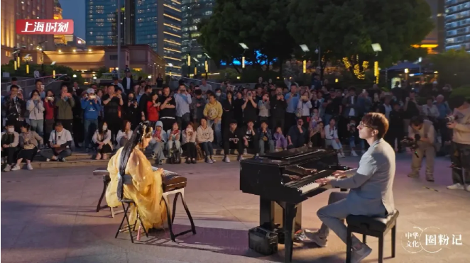 “我们在陆家嘴滨江表演拍摄,在场的观众那么多,更让人兴奋。”奥斯卡说,当他们开始演奏美丽而宽阔的城市公共空间时,许多人开始坐下来认真听。观众中有上海市民和中外游客。他们的情绪受到激情的钢琴和筝的影响。一首歌打完之后,现场传来热烈的掌声。