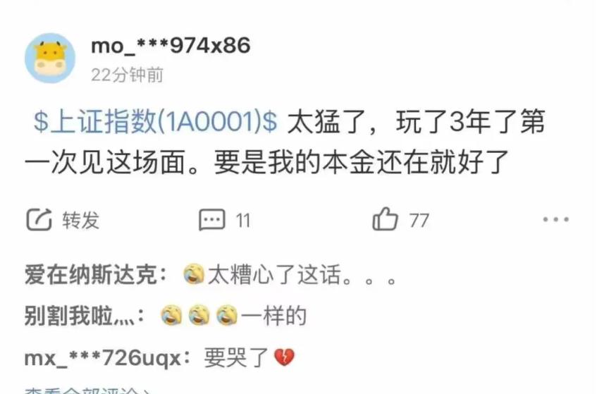 我室友很激进。24日,他看到政策齐全,把所有的钱都投进去了。他还借口在宿舍做小生意,让父母再拿一万块。下午市场收盘时,他赚了一个月的生活费。第二天早上,又是一个日线极限。他开始杠杆化。下午收盘时,收入已经达到30%。
