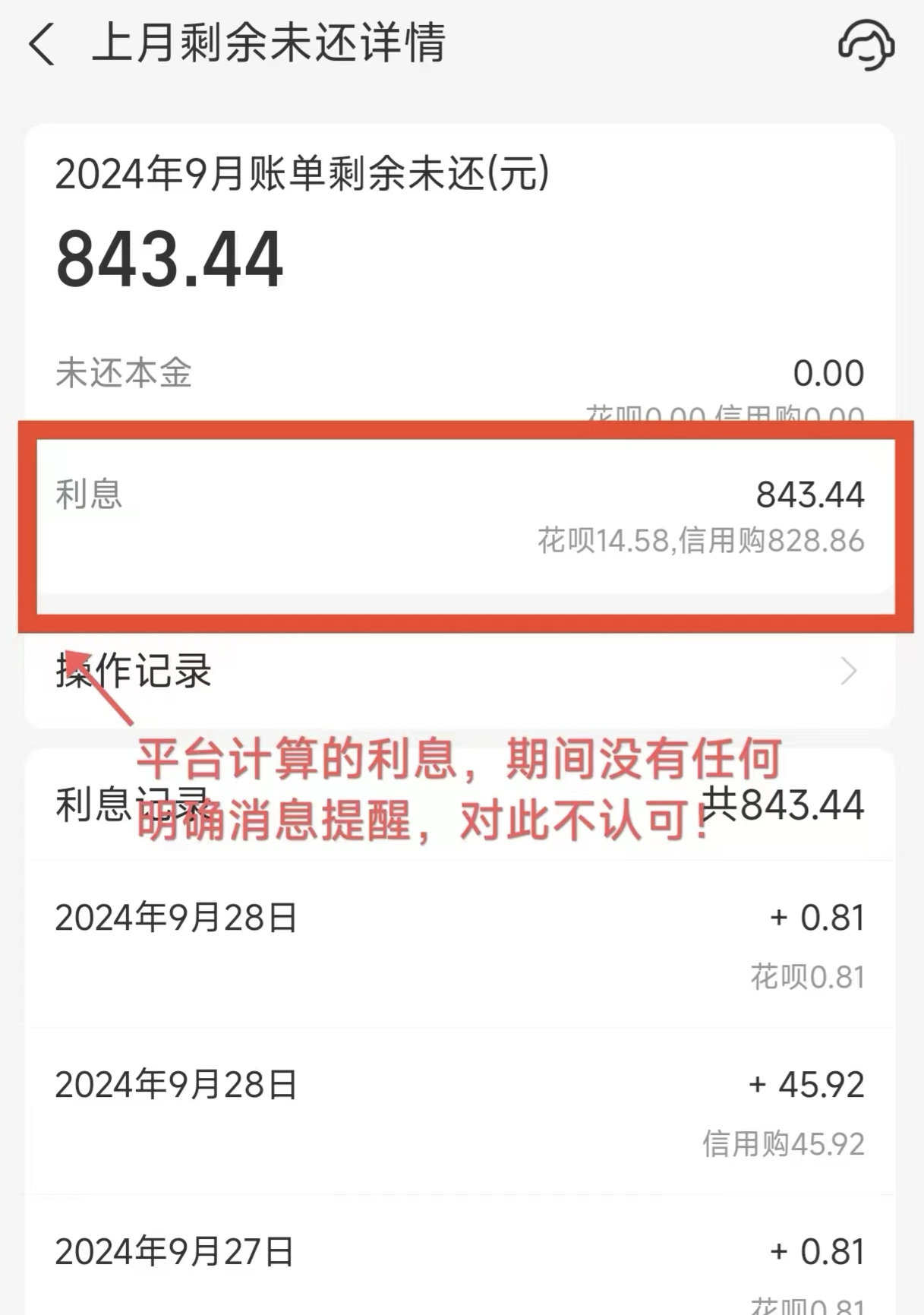 鲍女士说,在平台计算利息时,没有任何消息提示。