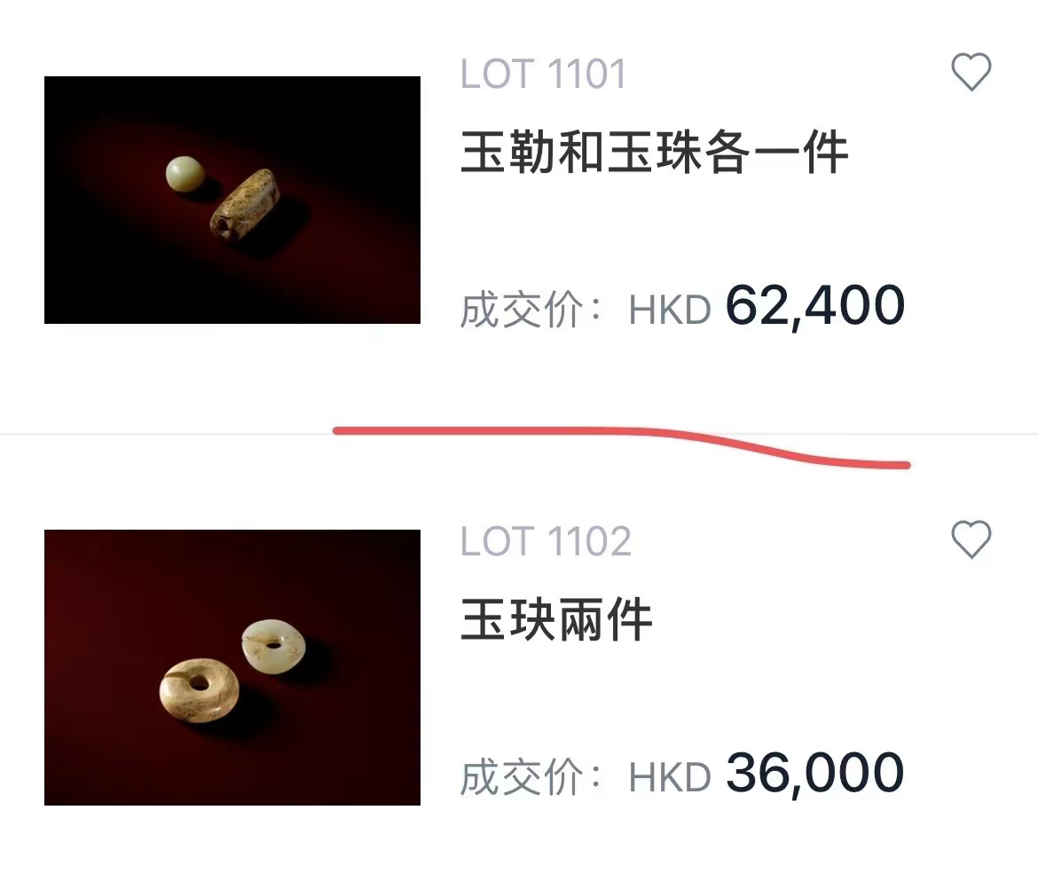 当时我估计前者的价格在3万港元左右,后者应该在2.3万港元左右。第一件物品卖出6.24万港元,第二件物品卖出3.6万港元。我想也许是因为每个人都在股市赚钱,所以他们把价格推得这么高。