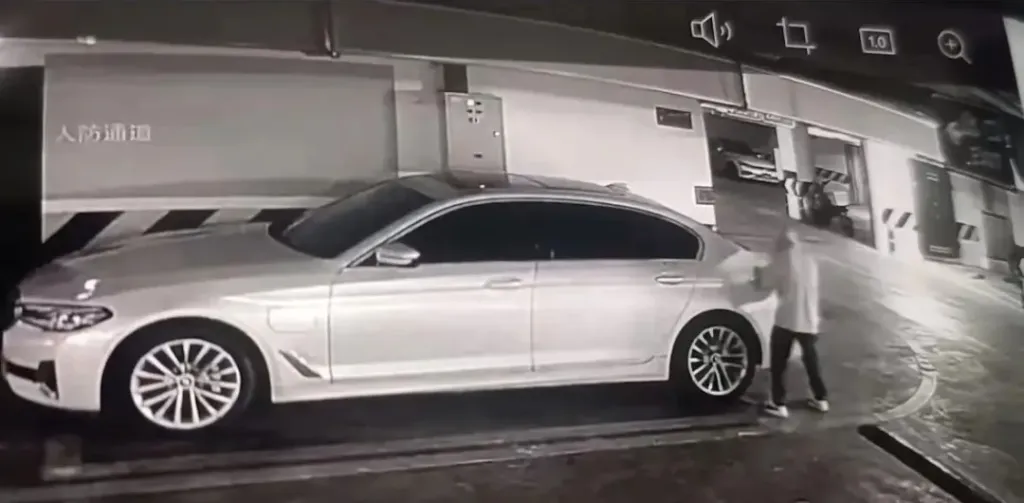 录像显示,该粉丝表示自己租赁的车辆被怀疑在停车场被故意刮伤。