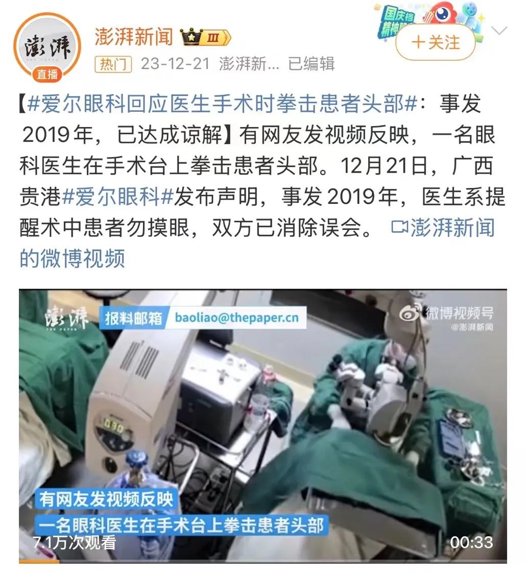 还记得2023年底爱尔眼科医生手术时搏击患者的视频吗?