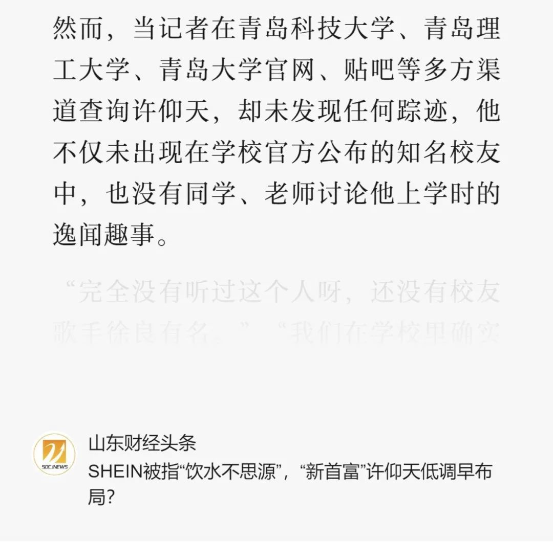 许仰天,希音的创始人,是山东淄博的学生,听说是青岛的一所大学。
