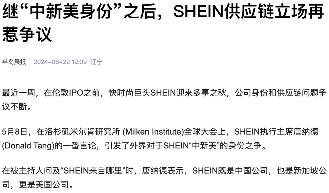 所以希音竭尽全力准备“中新美”三重身份,努力重塑身份标签,这也引起了不少争议。