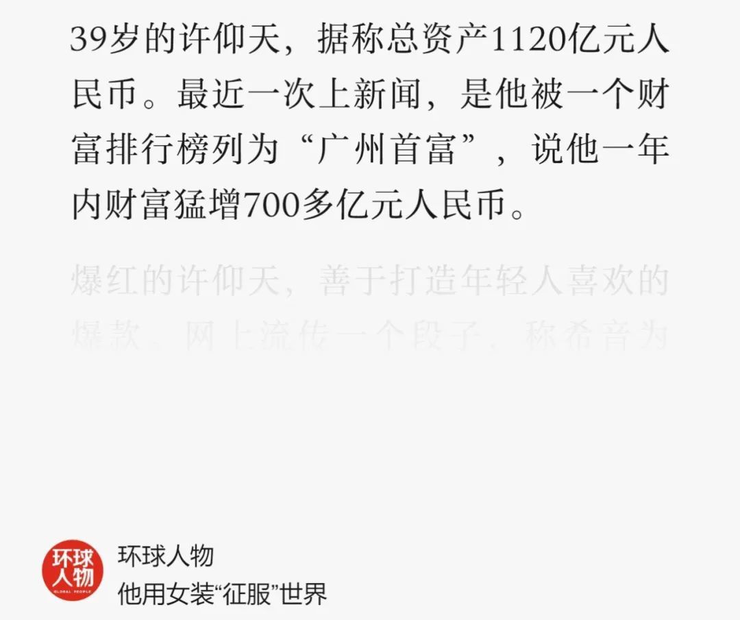 去年,有广州市民打开报刊一看,广州富豪还姓许,不过不是恒大的许老板,而是希音老板许仰天。