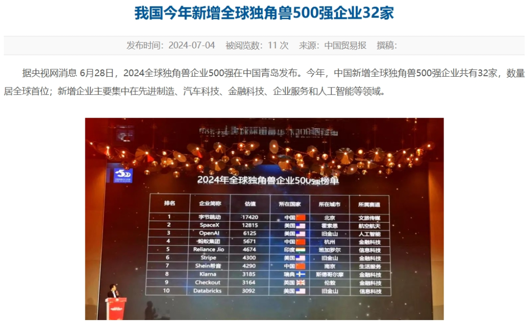 会议从全球范围内选出了500只独角兽,前十名的独角兽基本都是中美的,比如字节跳动、蚂蚁集团、SpaceX、OpenAI等都榜上有名。