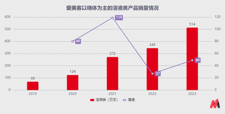 比如头部企业爱美客在医疗美容玻尿酸市场竞争激烈,大环境不好,消费降级,公司收入贡献高达58%的Hi系列也加入了“以价换量”的大军。近两年来,虽然公司以Hi系列为主的溶液产品销量仍在逐年增长,但平均单价正在下降。