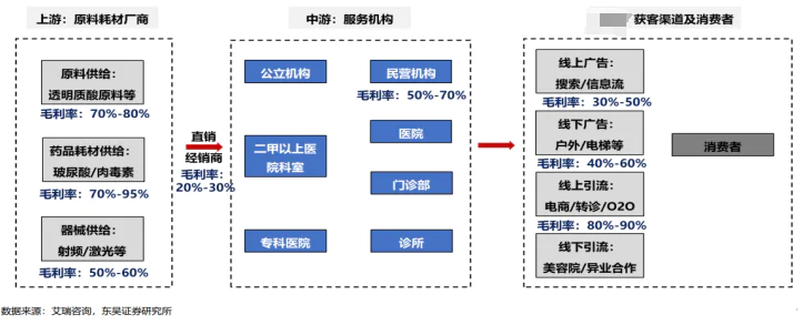 然后,中游医疗美容服务机构和上游产品供应商是美容行业发展的主要核心环节。