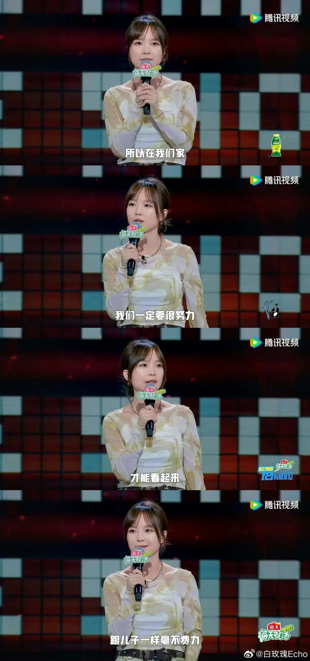 Echo在舞台上谈到了他的出身家庭,一个农村高山女孩的艰难命运。“在我们家,我们必须努力工作,才能看起来像孩子。”;在14岁的时候,她谈到了重男轻女家庭中被打压的二姐断婚出走,讨论了女性遭受的不公平待遇。