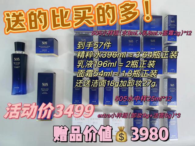 505 这套真的!很好!使用!这么说吧,不管是什么肤质,如果你觉得脸干脸绷,脸上有很多细纹,急切的目的是抗衰老,可以直接进入。 NOEVIR 的 505 套组