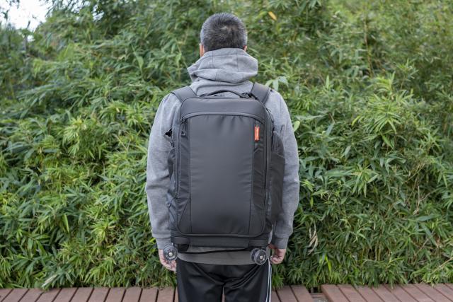 拉杆箱的方式,顾名思义,就是作为拉杆箱使用。在这种模式下,PGYTECH 摄影拉杆箱有很好的橡胶轮设计和宽大的拉杆设计,这两个优点我们后面独立介绍给大家。与此同时,PGYTECH 照相机拉杆箱的尺寸完全符合登机箱的限制规格,因此可以满足大多数航空公司的登机要求(可拆卸四个轮子)。与此同时,同样符合登机标准的,PGYTECH 摄影拉杆箱可以提供比一般登机箱高达一般 8% 的更大空间。