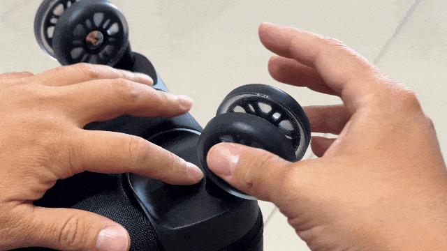 PGYTECH 摄影行李箱采用双排橡胶轮设计,所以拉起来和我们日常拉普通行李箱的体验基本一致,也就是说我们可以 360 无障碍的随意实施和转化。橡胶轮本身就是 PU 注射轮体,持久耐用。与此同时,橡胶轮内置轴承设计,实施时非常丝滑,并具有静音特性。如上所述,橡胶轮本身具有快拆设计,所以客户在不使用时可以轻松拆卸。