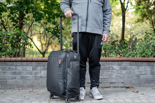 拉杆箱的方法是 PGYTECH 摄影拉杆箱的核心使用方法,我们再来看一下这一模式中商品的使用体验。首先说一下 PGYTECH 橡胶轮摄影拉杆箱。
