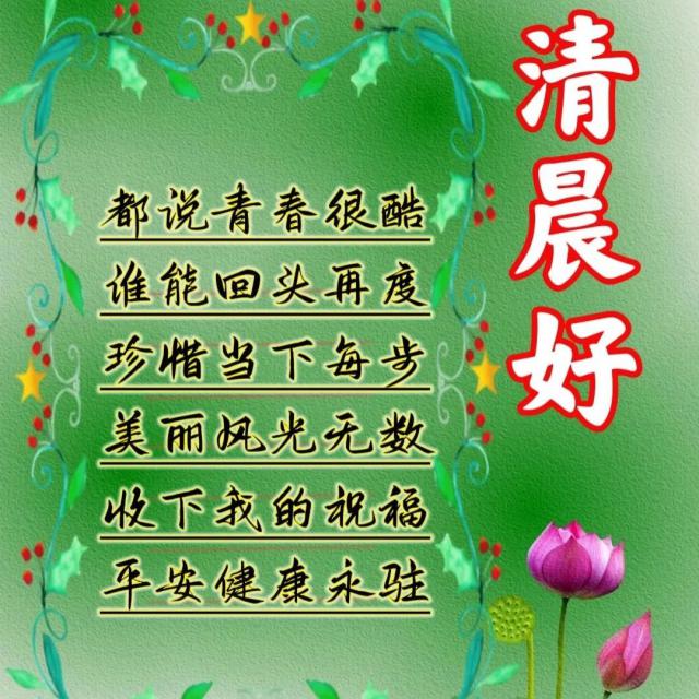 悄悄送上安全,悄悄传递好运,默默祈祷幸福,深深祝愿健康。新的一天!一切都很幸福!在命运的路上,因为你,我有了更多的温暖,因为我有了你,我有了更多的幸福,因为我有了你,我增添了一些精彩。感恩相遇!早上好!