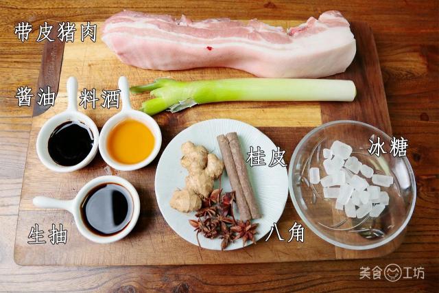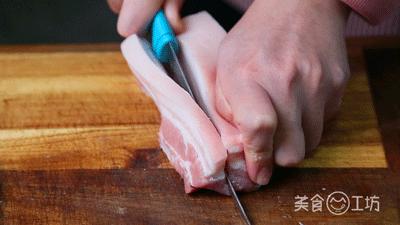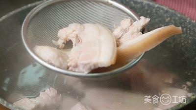 1. 将猪肉洗净切成厚约 1cm 将条条放入冷水锅中,大火烧开,焯水。 2 分钟。