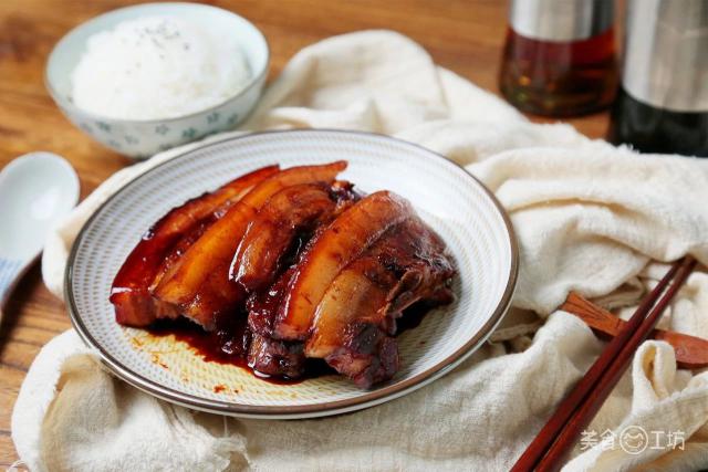 小心翼翼地将炖嫩的肉肉盛出,肉片上泛红光,肉皮已经被酱汁浸泡得晶莹剔透,看得见的柔韧 Q 弹,想吃!