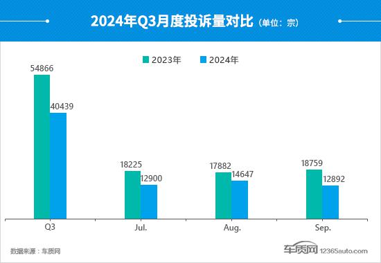 第三季度,与去年同期相比,每月投诉数量明显下降,特别是 9 月份,同比下降幅度超过。 3 成功了。然而,每个月的投诉都超过了万宗,仍然处于相对较高的水平。