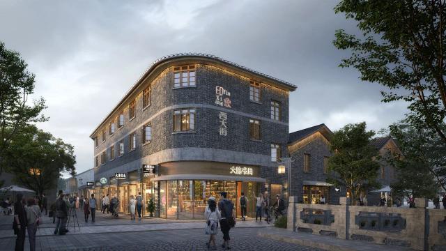 东入口:以青砖、白墙为主的整体现代风格,在保持历史特色的同时,通过底层商业更新等形式提升东入口形象。
