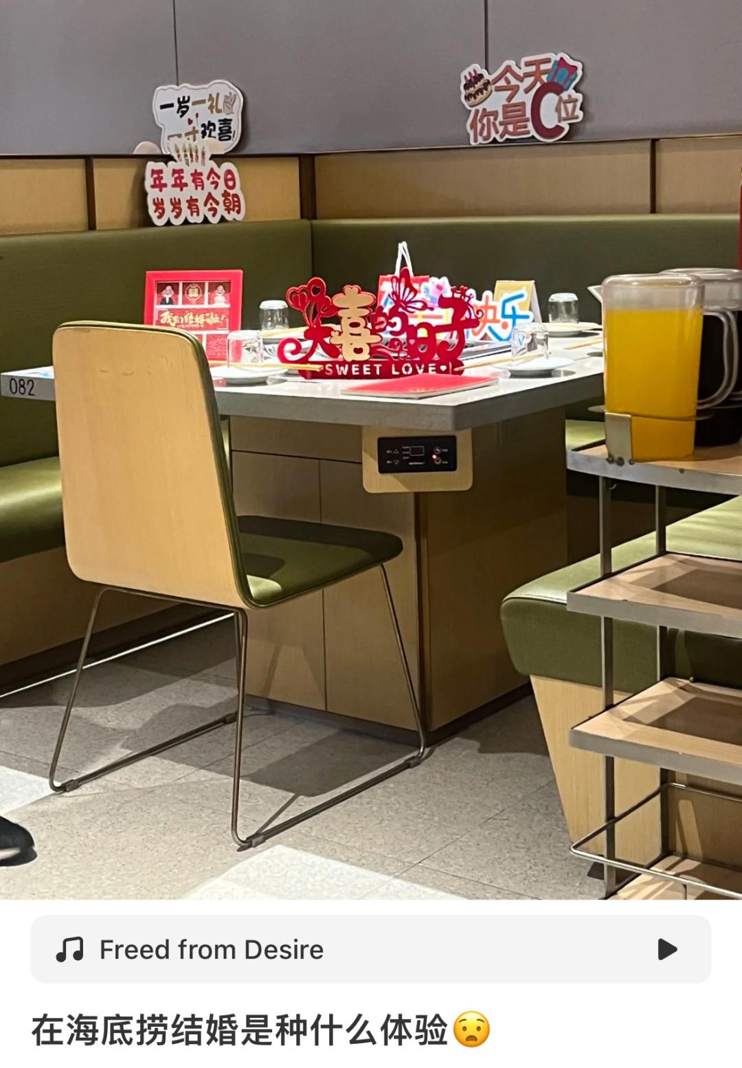 经过一轮调查,李萌萌计划在海底捞举行一场小型婚礼。“当时他拿到证书的时候,来吃海底捞庆祝。他不仅有桌面布局,还可以免费打印照片,领取相框和小吃礼物。”