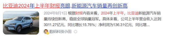 看看比亚迪上半年的收入,136。 个亿,同比增长 24.44%,这是什么意思?