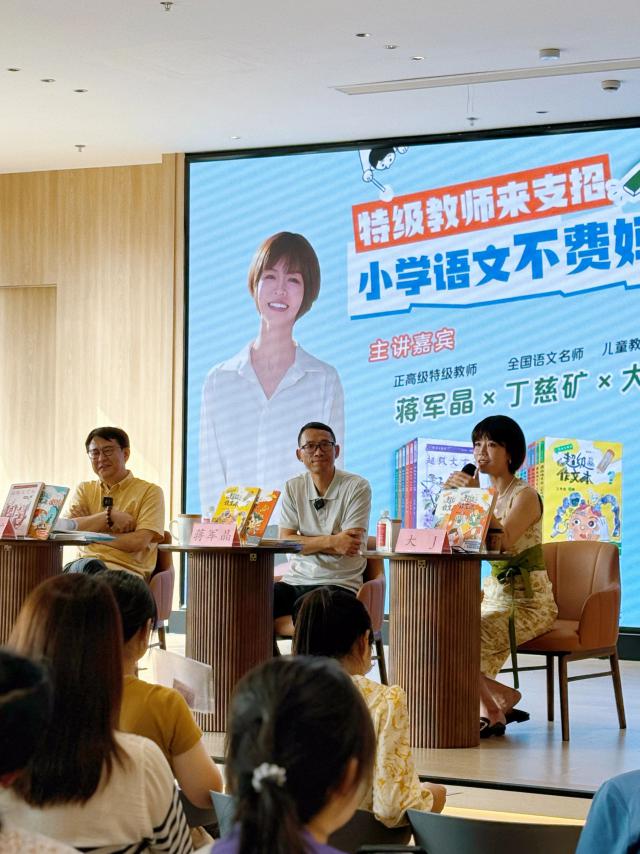 左一,丁慈矿老师;左二,蒋军晶老师,他们出版了《超级作文本》和《超级文言本》,之前也推荐过大家。