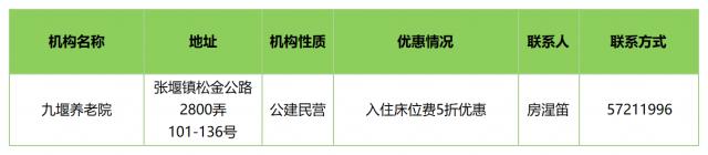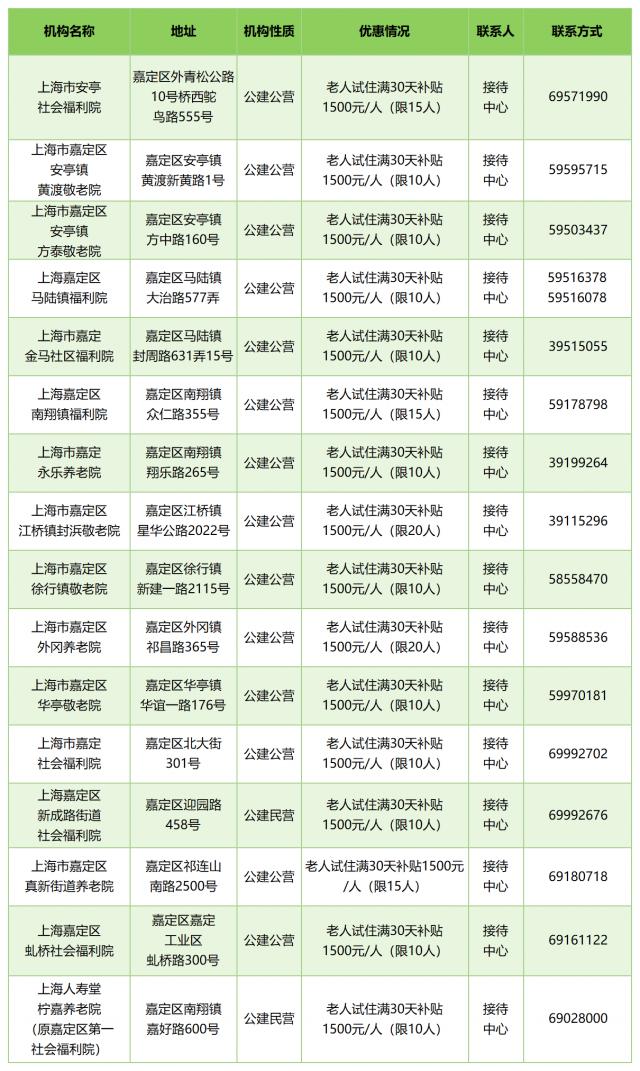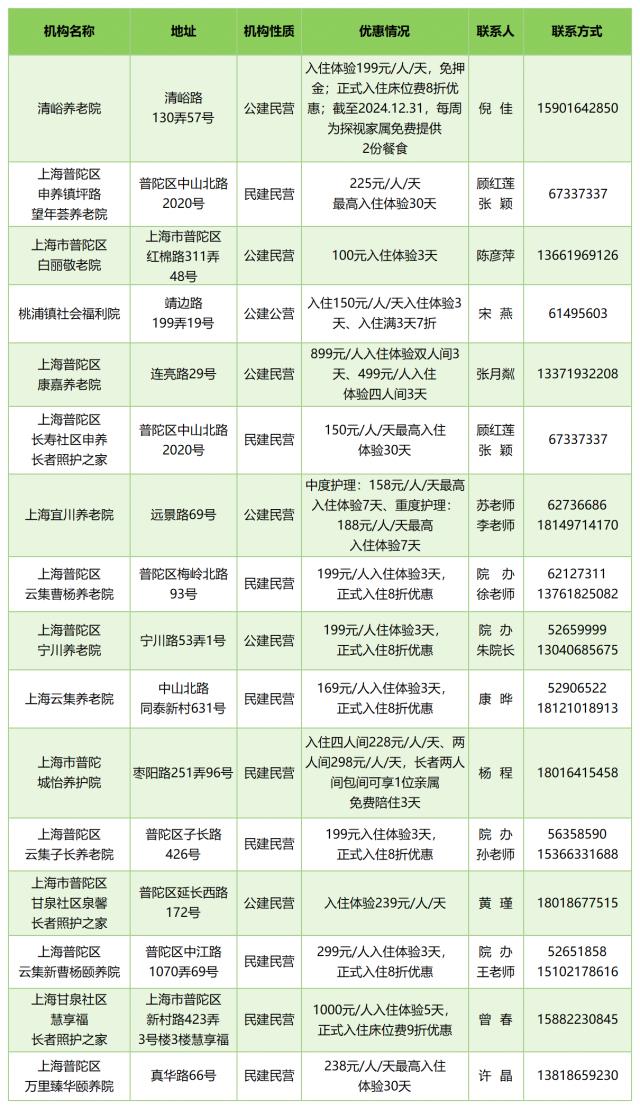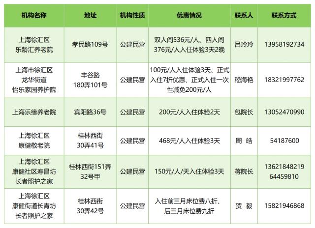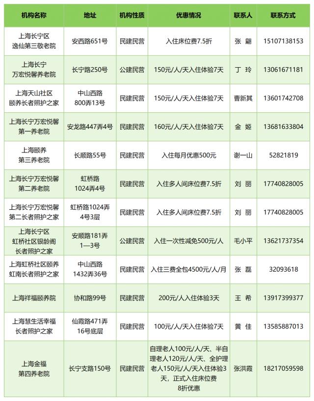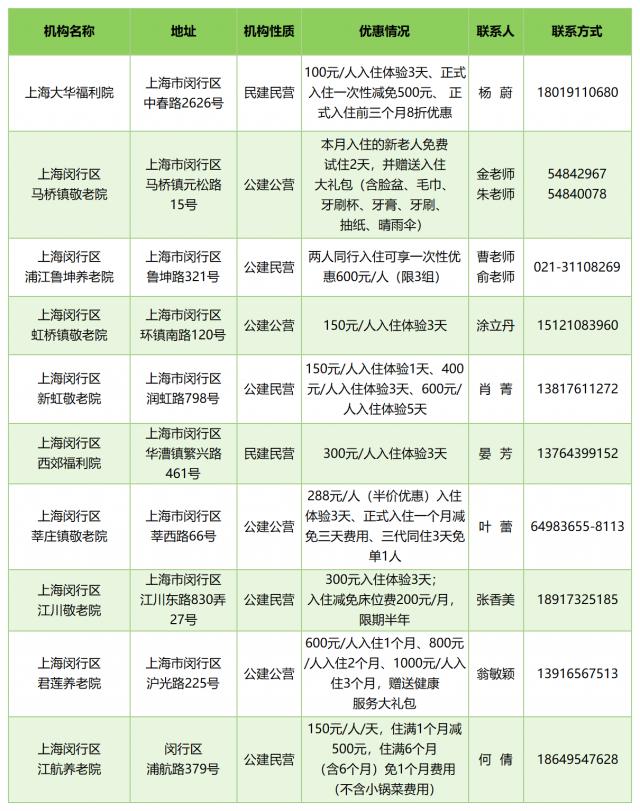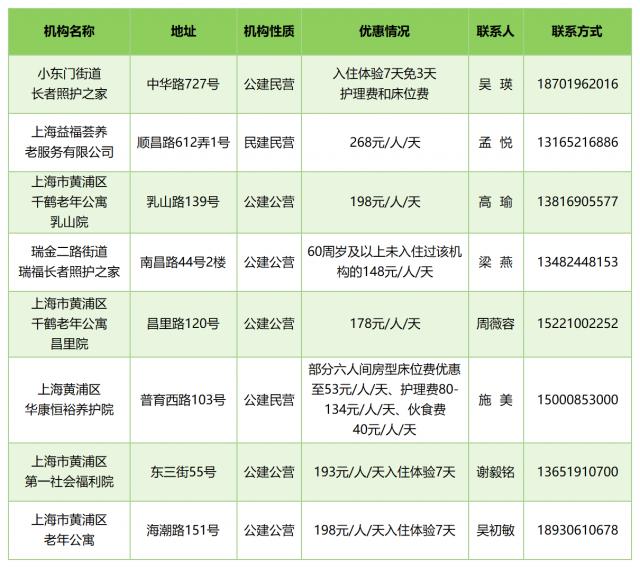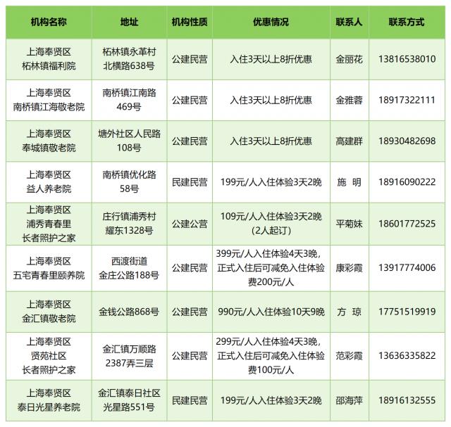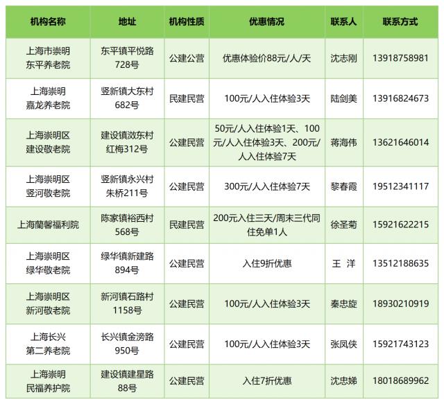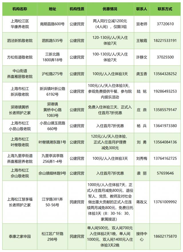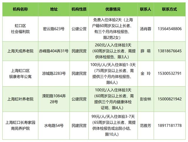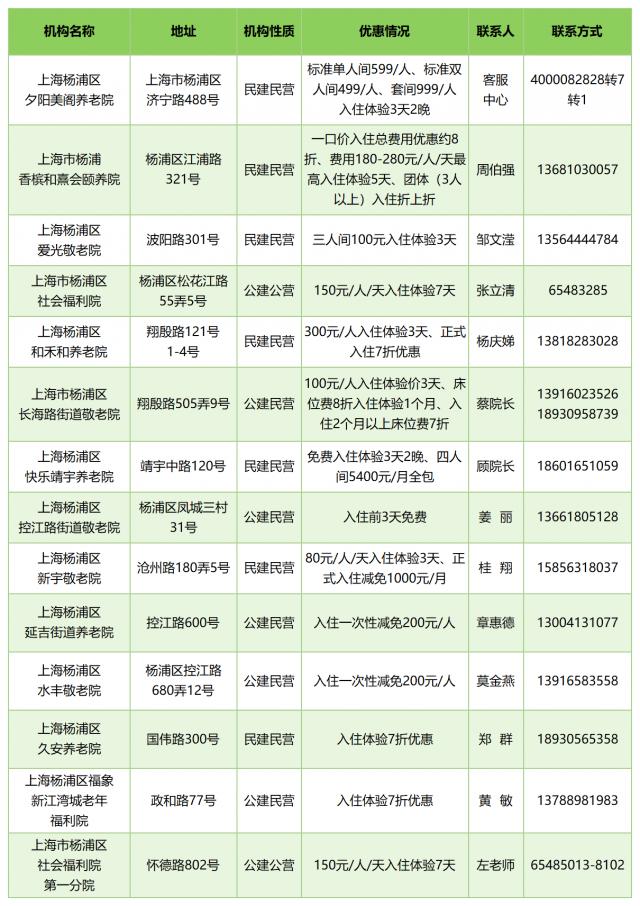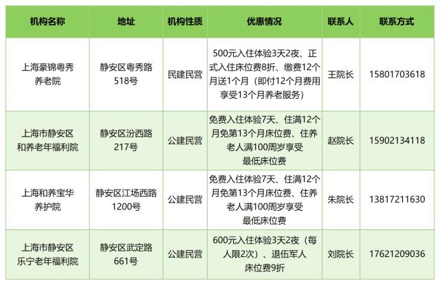 今年,市民政局介绍 10 月是全国第 15 一个“敬老月”,为弘扬孝敬老人的优良传统,展示新时期养老机构的风采,当地超过百家优质养老机构推出入住体验优惠活动。这些机构的服务质量监测和信用评级评价结果都是好的或者好的。 B 级(含)以上(新开业除外)通过短期住房折扣甚至免费试用、入住减少、服务项目折扣等不同方式推出了各种折扣体验套餐。详情↓