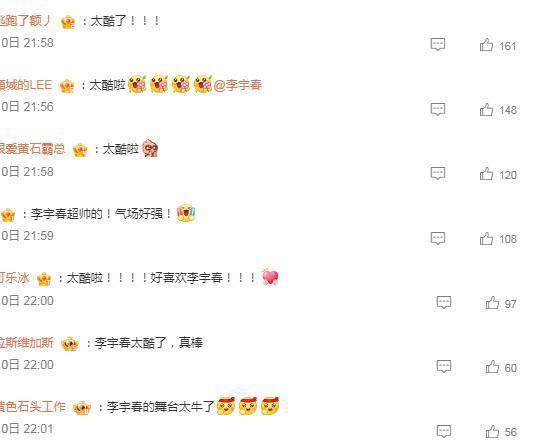 也有网友写道:“李宇春的舞台太牛逼了。”