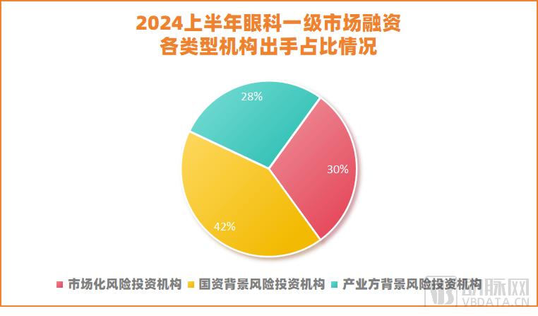 据动脉橙数据库数据显示,2024年上半年,国有资产背景的风险投资机构约占我国眼科领域融资事件的42%,市场化机构约占30%,以CVC为代表的产业方背景机构约占28%(2023年约占25%),后者持续上升。