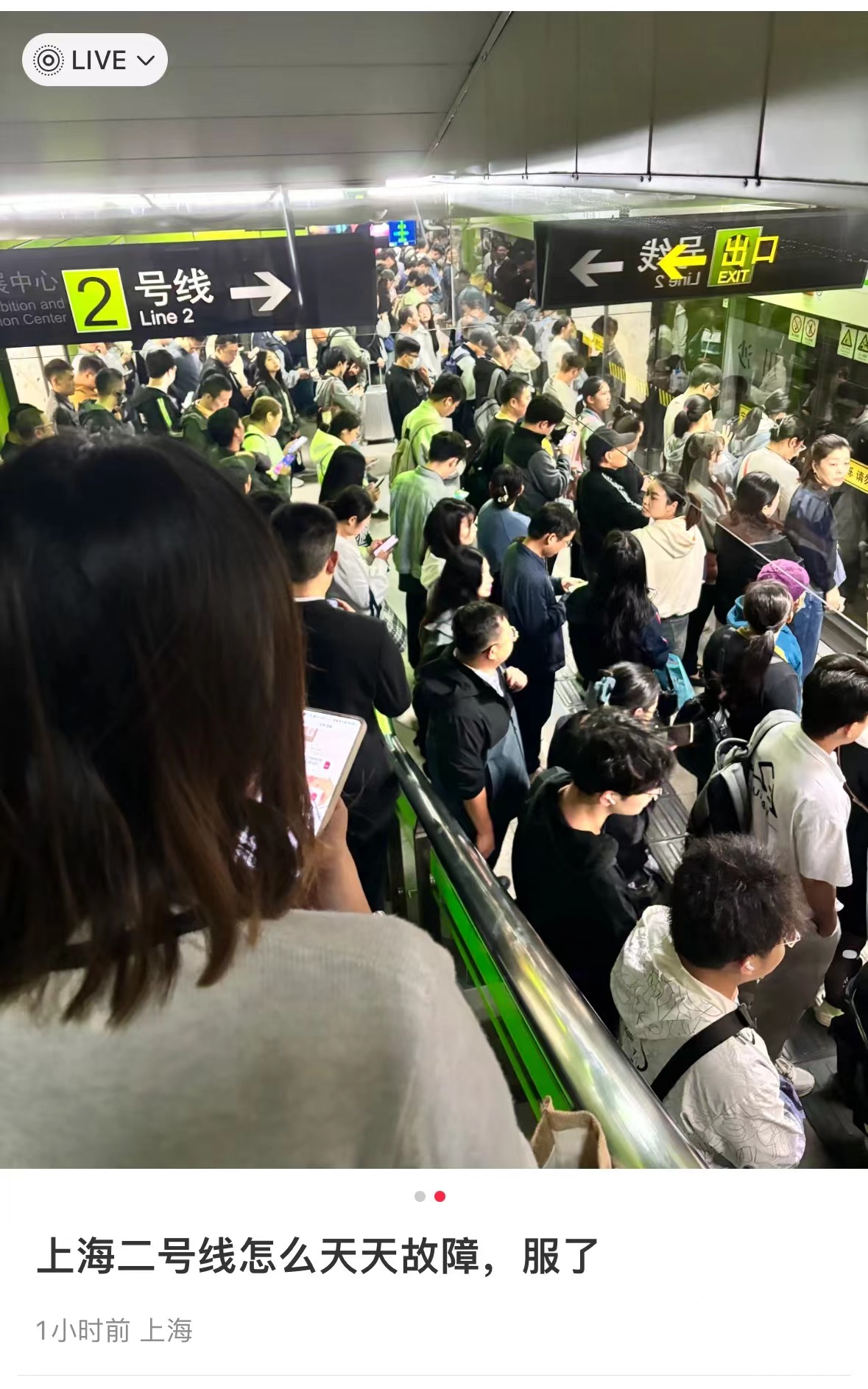 今日(十月十一日),早高峰期,有网友发帖称上海地铁2号线出现故障。