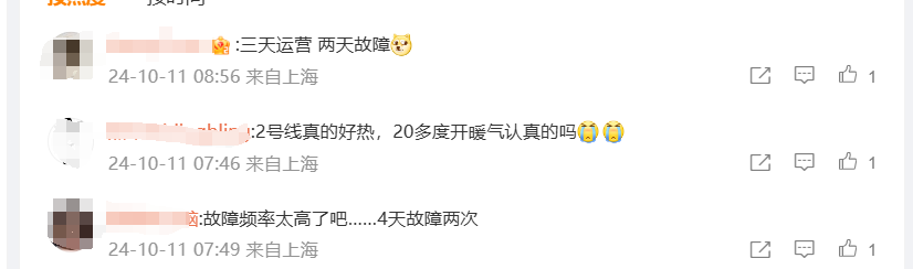 也有网友表示,上海地铁近4天已经出现了两次故障,“太频繁了”。